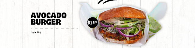 Avocado so nice, we layered it twice! Fala Bar's Avocado Burger is a veggie dream: grilled sweet potato patty meets lentils, kale, & a hint of cilantro, topped with greens and a double dose of avo goodness. Dip into avocado tahini bliss with every bite!