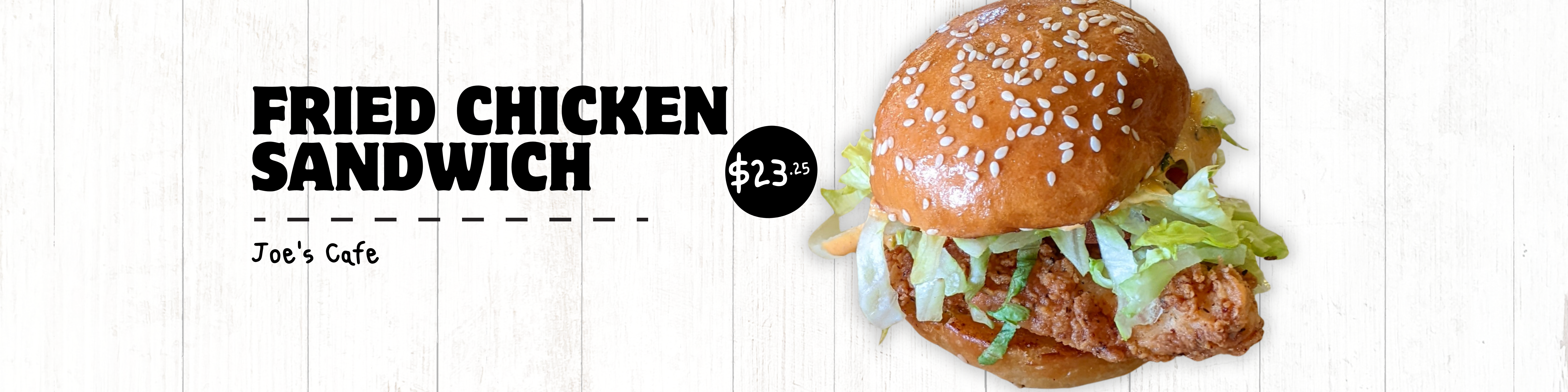 Cluck yeah! Joe's Cafe just upped the sandwich game with a crispy fried chicken masterpiece, slathered in smoky chipotle mayo and nestled in a toasty bun. Sidekicks include: fries, green envy salad, potato power salad, or cool coleslaw. Choose wisely.
