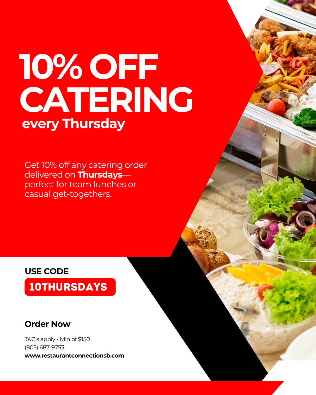 Every Thursday, get 10% off any catering order delivered with RC. Perfect for team meetings, office lunches, or just feeding your hungry crew at home without the kitchen chaos.
