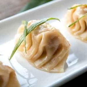 Steamed and pan fried jiaozi filled with ground pork shoulder, napa cabbage, minced fresh ginger, soy sauce, sesame oil and green onions. Pre-made item, no changes/substitutions allowed.