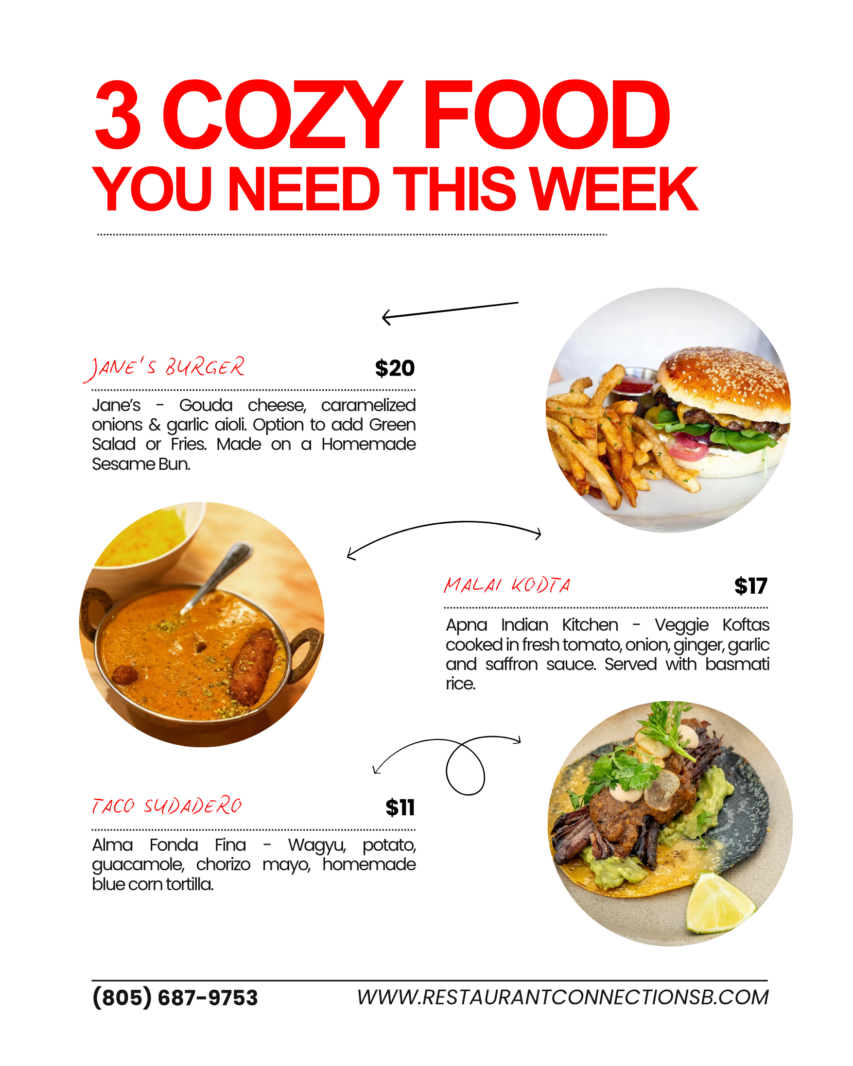 Let’s be honest—some days just call for food that feels like a warm hug. When comfort is the craving, these local Santa Barbara eats deliver big-time on flavor, richness, and satisfaction. And yes, we’ll bring it straight to your door.